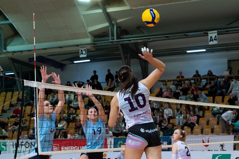 S prvo finalno tekmo v dvorani Lukna med odbojkaricami OTP banke Branika Maribor in Calcita Kamnik se je začel boj za naslov državnih prvakinj. Mariborske odbojkarice bodo naskakovale osemnajsto zvezdico, kamniške deveto. Za naslov so potrebne tri zmage. Mariborčanke so bile v letošnji sezoni v štirih medsebojnih tekmah s Kamničankami štirikrat uspešnejše, trikrat so zmagale v državnem prvenstvu in enkrat v pokalu, a te tekme in zmage ne štejejo nič, so le statistični podatki, kajti finalni obračuni so poglavje zase v tekmah za naslov. Uvodno tekmo so bolje začele bankirke, ki so tekmice premagale s 3:2 (24:26, 25:21, 21:25, 25:19,15:13) in si priigrale pomembno prednost pred drugo tekmo, ta bo v petek ob 18. uri v Kamniku. Uvodni niz je postregel z izenačeno igro, ekipi sta se menjavali v vodstvu, rezultat je bil kar sedemkrat izenačen. Rahla pobuda je sicer bila na strani gostiteljic, saj so nekajkrat povedle za dve točki, a so jih tekmice vselej dohitele, pri rezultatu 18:18 pa dosegle točko za vodstvo z 19:18. V izenačeni končnici so Štajerke povedle s 24:22, a so Gorenjke s štirimi točkami zapored dosegle zasuk in dobile niz. Mariborčanke so v drugem nizu zaigrale za spoznanje bolje in si po uspešnih napadih Ize Mlakar in Klare Milošič priigrale prednost z 12:8, ta pa je bila kratkotrajna, kajti gostje so s petimi zaporednimi točkami povedle s 13:12. Sledil je preobrat s petimi zaporednimi točkami Štajerk za vodstvo z 18:14. Državne prvakinje so nato povedle s 23:17 in niz z nekaj težavami pripeljale do konca. V tretjem nizu so Mariborčanke povedle z 8:2, nato pa zaigrale zmedeno in gostje so pri 9:9 izenačile rezultat. Sledil je nov nalet bankirk z vodstvom s 17:13, gostiteljice so vodile tudi z 19:14, in namesto da bi nadaljevale dobro igro, so zaigrale nezbrano, nezanesljivo v napadu in obrambi, šepal pa je tudi sprejem. Ko so si privoščile še nekaj začetniških napak, so jih Gorenjke s pridom izkoristile, osvojile sedem točk zapovrstjo za vodstvo z 21:19, tega pa do konca niza niso več izpustile iz rok. Četrti niz je spet nakazoval izenačeno igro, pri 8:8 pa so gostiteljice zaigrale bolj prodorno v napadu in zbrano v obrambi in povedle s 15:11. Sredi niza so prednost povišale na pet točk (18:13), za pet točk je mariborska vrsta vodila še pri 21:16 in 22:17, pri vodstvu s 23:17 pa je bilo bolj kot ne jasno, da bo o zmagi odločal peti niz. Začel se je po notah mariborskih odbojkaric, saj so povedle s 6:3, kamniška vrsta se je približala na točko, nato je mariborska spet pobegnila za tri točke (10:7). Ko je Iza Mlakar, kapetanka bankirk, ekipo popeljala do vodstva z 12:8, je bilo slutiti, da se tekmicam napoveduje poraz, toda te so prednost gostiteljic znižale na točko (12:11), pri vodstvu Mariborčank s 14:11 spet na točko (14:13), zmago pa je OTP banki Branik s točko priigrala Mlakarjeva.